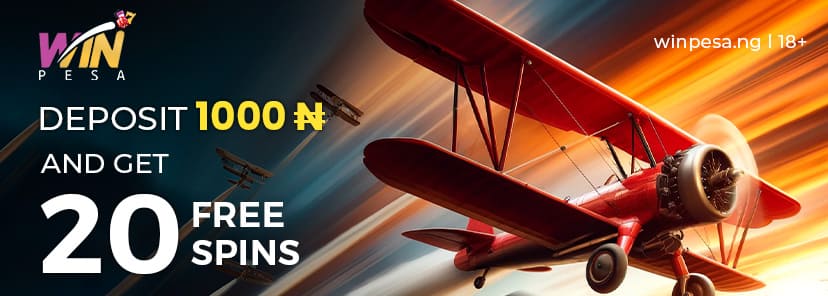 Join Winpesa and get 20 FREE SPINS for the first deposit of 1000₦ or more! Simply sign up, deposit and get FREE SPINS on the Aviator game!